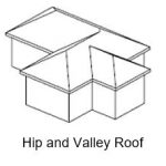 Hip and Valley Roof – A hip roof is a roof where all sides slope downward towards the walls. When sections of the roof that are perpendicular to each other meet, this creates valleys. Valleys are the Vee shaped channels that run up and down folds of a roof (where different roof sections meet). Hip and Valley roofs are more complex than Gable roof types making them more difficult to build which makes them more expensive to build.