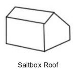 Saltbox Roof – A saltbox house is a traditional New England home style. The roof is what defines that style. It has a pitched roof with a long slope down the back of the home. The front of the home is typically two stories with the long roof covering a single story portion of the home to the rear.